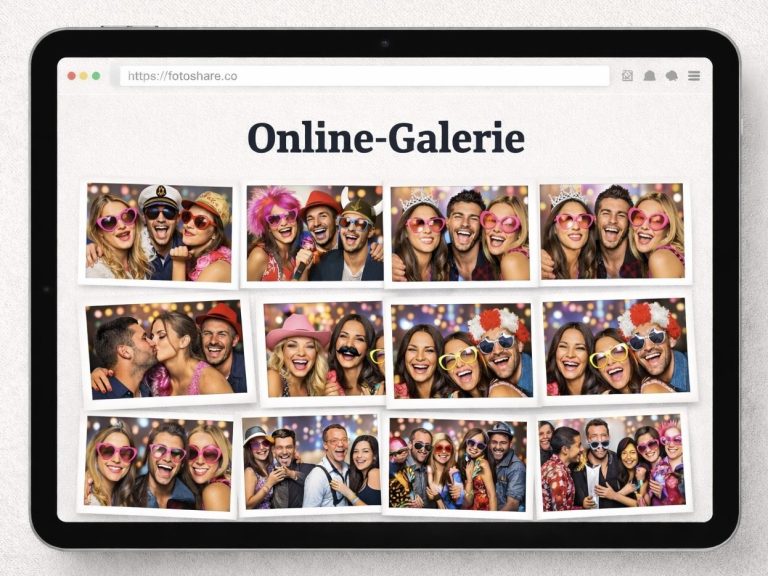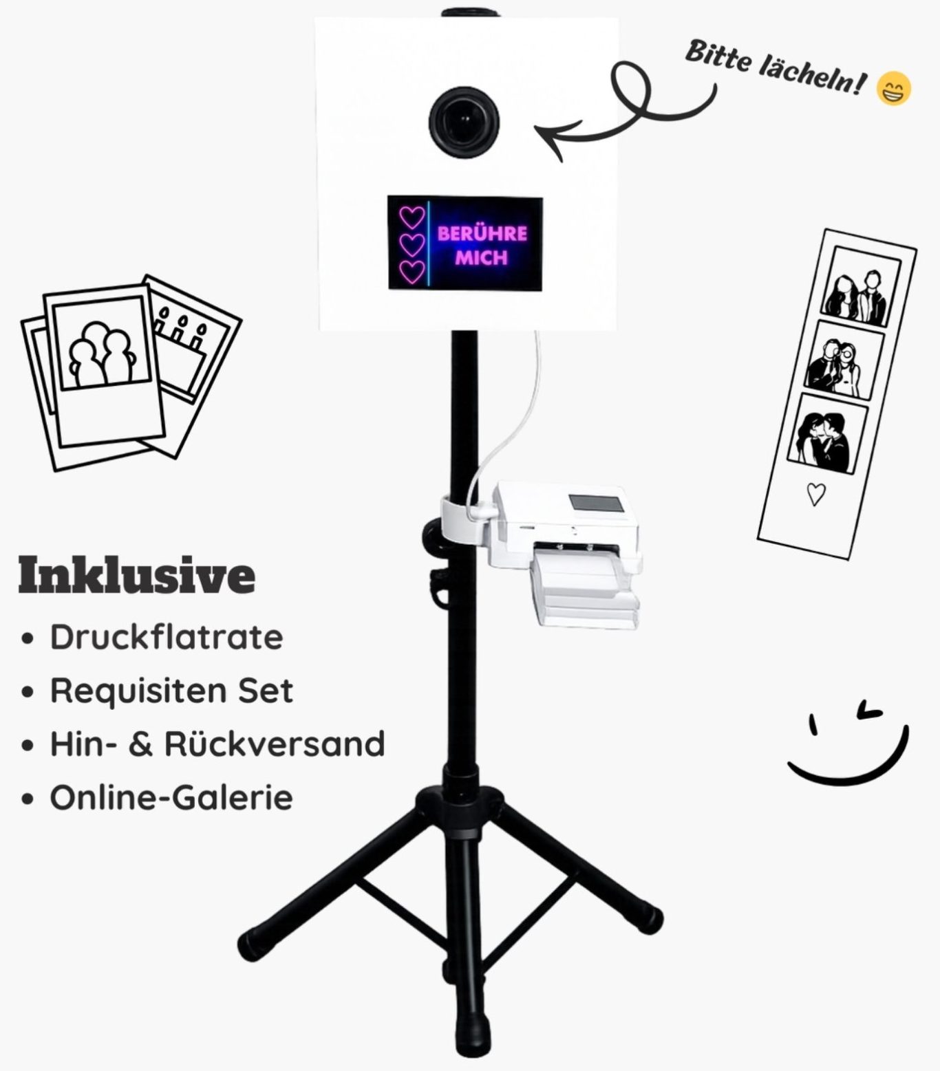 Fotobox mit Fotodrucker, Requisiten und Online Galerie mieten